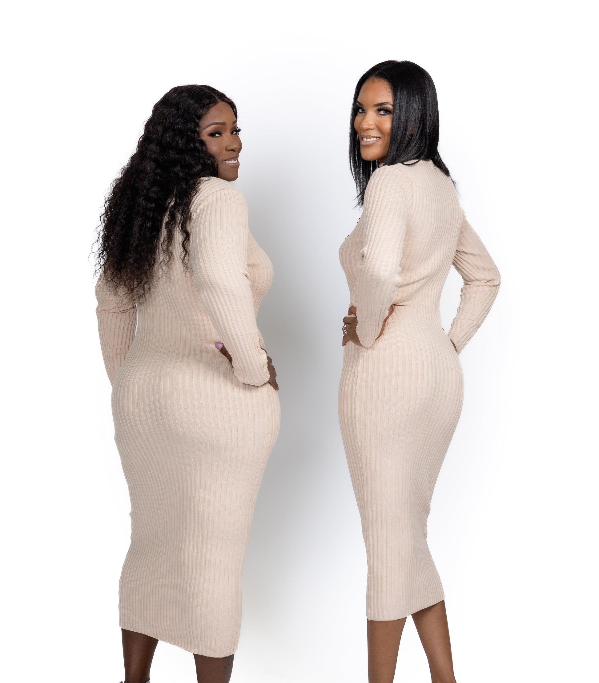 Keep Dreaming High Neck Ribbed Sweater Dress
